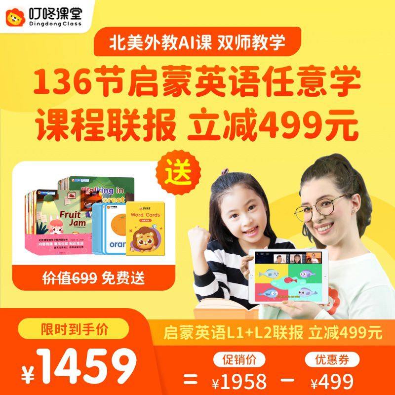 【每节不到11元 | 包邮送价值699元配套教辅】叮咚课堂·英语启蒙L1+L2组合课包(136节),适合2-5岁!哈佛教研出品,北美外教AI课,双师教学,专为幼儿定制!