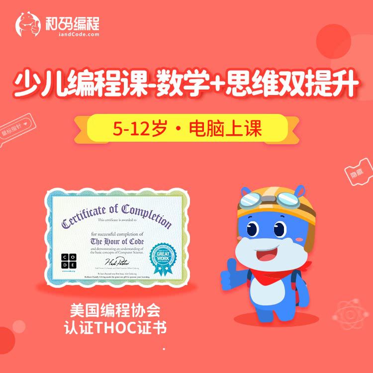 【开学季特惠】和码编程少儿入门课6节+电子学习资源+完课电子证书,5-12岁编程思维启蒙必备,每天30分钟提升数理思维!