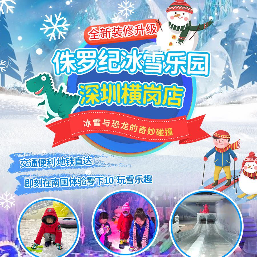 冰雪与恐龙の奇妙碰撞!¥29.9起畅玩深圳『横岗侏罗纪冰雪乐园』!一票趣享滑滑梯、碰碰车、飘雪区、堆雪人...即刻在南国体验零下10°玩雪乐趣,赴一场白色梦幻奇缘之旅!