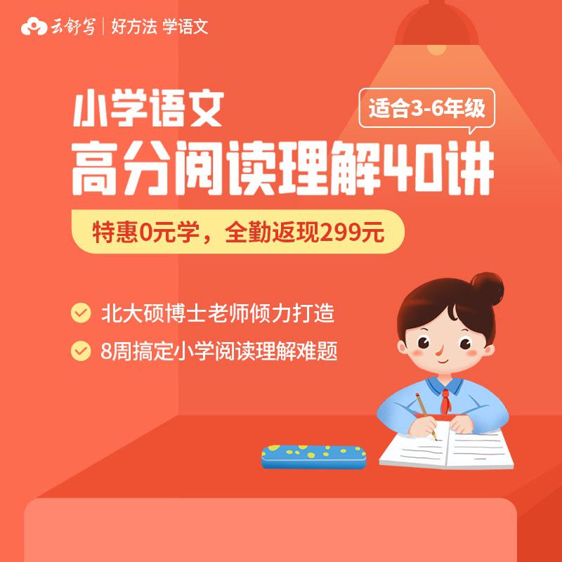 【4月20日-4月30日24点 | 全勤打卡0元学】云舒写·小学语文高分阅读理解40讲,北大硕博士老师倾力打造,适合3-6年级!每天8分钟,阅读理解很轻松~