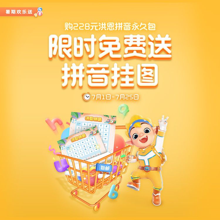 【7.1-7.25丨限时赠送拼音卡+拼音练习册】洪恩拼音拼读永久包,零基础必备,一拼音一儿歌交互学习,科学语音测评系统,教学课程同步部编版小学语文课本!