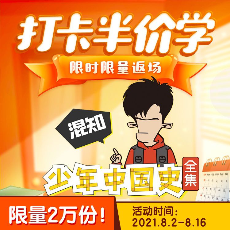 【8月2日-8月16日丨限时打卡半价学】喜马拉雅儿童 x 知名百万级大号“混知”首档专辑音频:少年中国史全集,图文并茂漫画式重新演绎中国史!