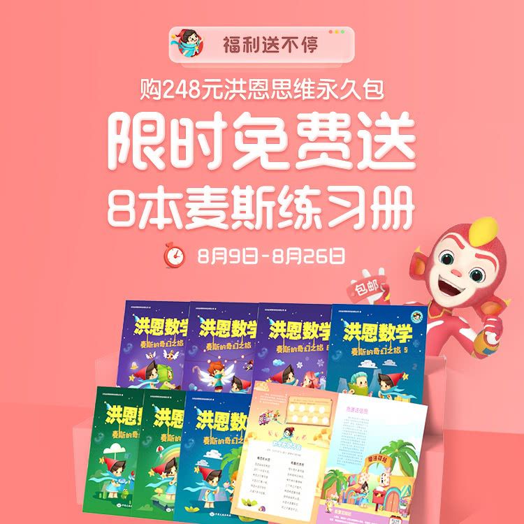 【8.9-8.26丨包邮送麦斯练习册8本】洪恩思维永久使用权益,趣味思维训练游戏,增强宝贝记忆力,口算更快~