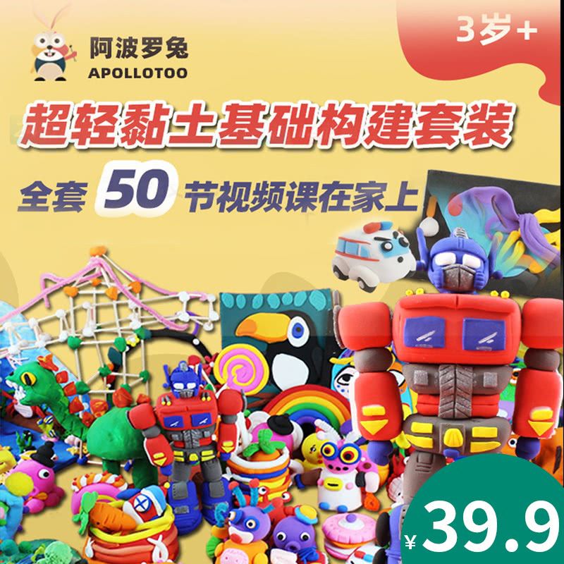 国庆大放“价”!仅需¥39.9=50节阿波罗兔超轻黏土基础构建课+36包黏土及创意材料,老师同步教学视频,足不出户就能学!黏土手工技能全Get,让孩子玩出更多可能~