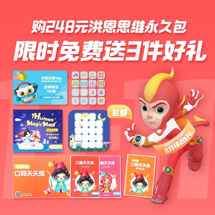 【11.15-11.30丨包邮送口算天天练+记忆棋+洪恩故事专辑】洪恩思维永久卡,趣味思维训练游戏,增强宝贝记忆力,口算更快!