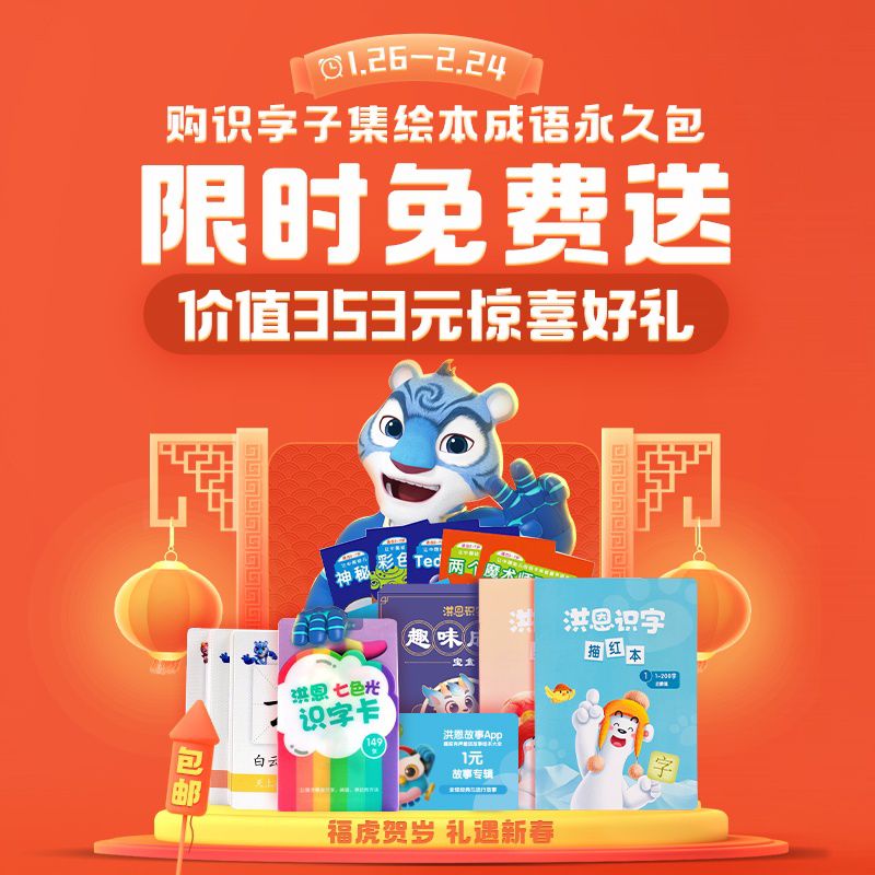 【礼遇新春1.26-2.24丨包邮赠七色光识字卡+子集扩展幼儿识字初阶+描红本+趣味成语+1元故事专辑】洪恩永久识字包+成语永久包+子集绘本永久包,1300个常用汉字启蒙!