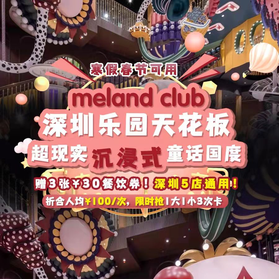 【meland club•春节清明通玩深圳5店】乐园天花板重磅来袭!人均折合¥100/次,1大1小3次卡限时抢,还赠3张¥30餐饮券!超现实沉浸式童话国度,好玩到想N刷~
