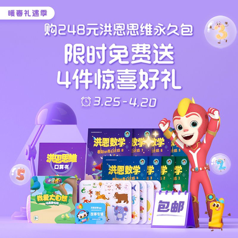 【暖春礼遇季3.25-4.20丨包邮赠口算书+麦斯练习册+我爱大自然磁贴】洪恩思维永久卡,趣味思维训练游戏,增强宝贝记忆力,口算更快!