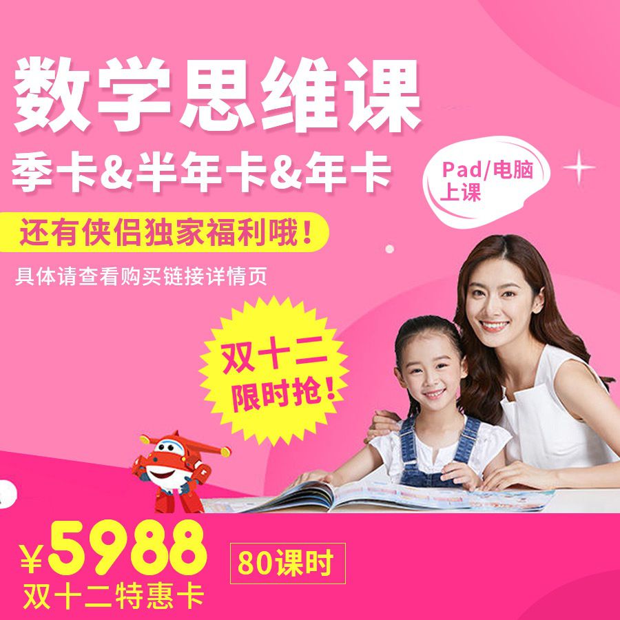 双12限时抢!VIPTHINK豌豆思维【快乐数学启蒙课】80课时!创新工场创始人李开复博士倾力推荐,适合3—8岁的VIPTHINK在线直播数学课,还有侠侣独家福利!