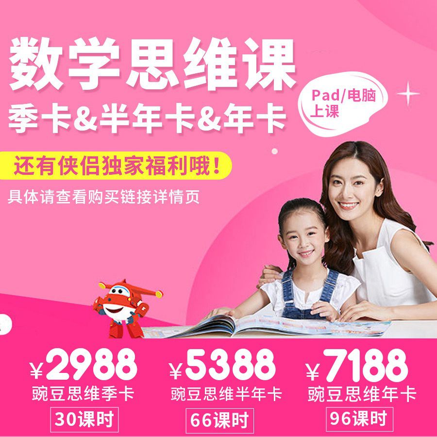 让孩子爱上数学 | VIPTHINK 豌豆思维「年卡 & 半年卡 & 季卡」,创新工场创始人李开复博士倾力推荐,适合3—8岁的在线直播数学课,课程结合超级飞侠,孩子们可喜欢啦~