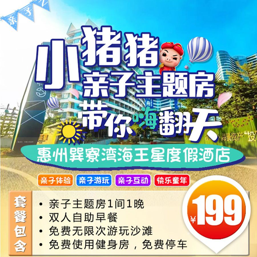 『春节有房』¥199抢【巽寮湾海王星度假酒店】亲子主题房!额外享双人自助早餐、无限次游玩沙滩+免费健身房+免费停车!有效期长达一整年~