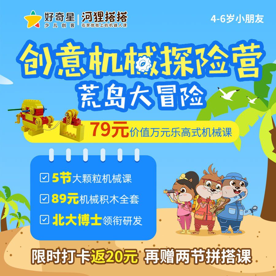 【限时打卡返20元奖学金,再赠2节趣味造型课 | 限前500】好奇星机械探险营,5节动画课+14天导师陪学,买即赠89元全套机械积木~在构建模型中,锻炼宝贝的逻辑思维,通过闯关游戏开启孩子的科技启蒙!