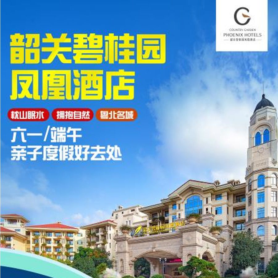 六一&端午嗨翻天!¥499入住韶关『碧桂园凤凰酒店』!享花园度假阳台房1间/晚,2大1小特色中西式五彩自助早餐,2大1小岭南风情自助晚餐,趣玩缤纷六一嘉年华!出发~ 即刻赴一场踏青+古村+美食之旅~