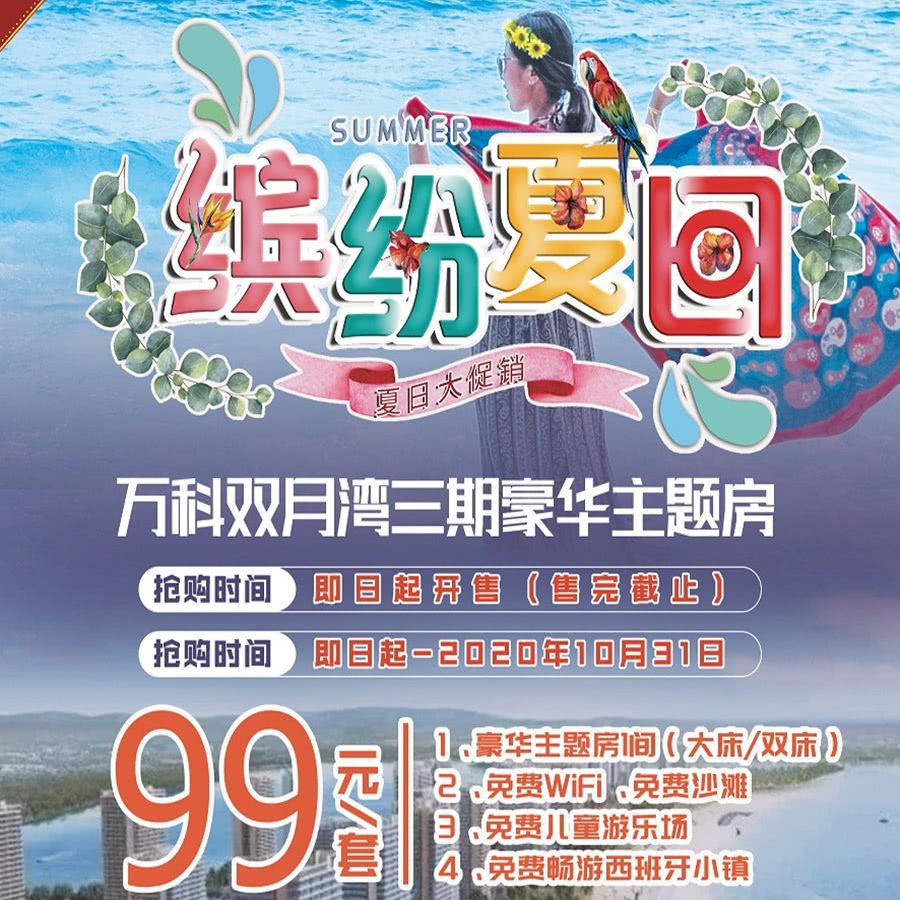 【周末节假日通用】¥99抢惠州双月湾万科三期豪华主题房(大床/双床)1间/晚!打卡网红双月湾,免费玩转沙滩 、儿童游乐场,免费畅游西班牙小镇!5~6月,9~12月平日不加收,出游党快囤!
