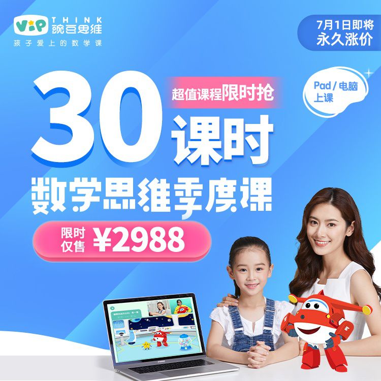 VIPTHINK 豌豆思维「季课卡」+ 侠侣独家福利 | 让孩子爱上数学!创新工场创始人李开复博士倾力推荐,适合3—8岁的在线直播数学课,课程结合超级飞侠,孩子们可喜欢啦~