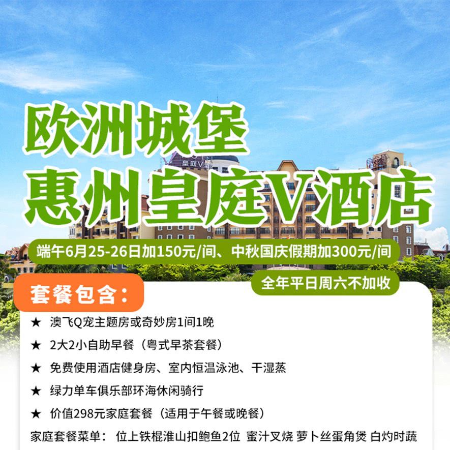 【有效期至2020年底】¥499入住『惠州皇庭V酒店』澳飞Q宠主题房或奇妙房1间/晚,享 2大2小自助早餐(粤式早茶套餐)+免费健身房&室内恒温泳池&干湿蒸+绿力单车俱乐部环海休闲骑行...