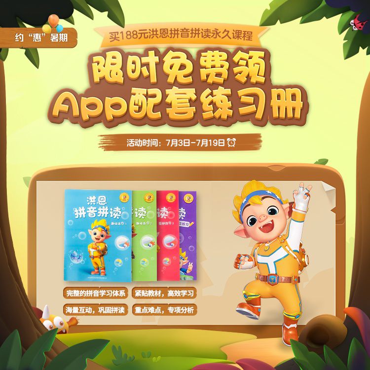 【7.3-7.19限时加赠配套拼音练习册】洪恩拼音拼读永久包幼小衔接必备,一拼音一儿歌交互学习,科学语音测评系统,教学课程同步部编版小学语文课本!每天十分钟,轻松学拼音,让小朋友轻松上小学~