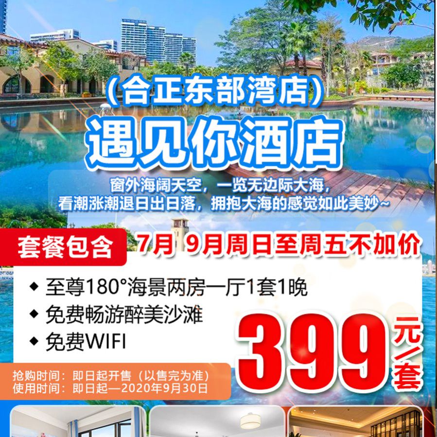 暑期专享!广佛深出发仅1.5h车程!¥399赴一场海滨之旅!打卡惠东『遇见你酒店(合正东部湾店)』,享至尊180°海景两房一厅1套/晚,与巽寮湾共享一片海,一睁眼就是360°迷人海景!