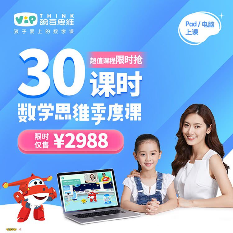VIPTHINK 豌豆思维「季课卡」+ 侠侣独家福利 | 让孩子爱上数学!创新工场创始人李开复博士倾力推荐,适合3—8岁的在线直播数学课,课程结合超级飞侠,孩子们可喜欢啦~