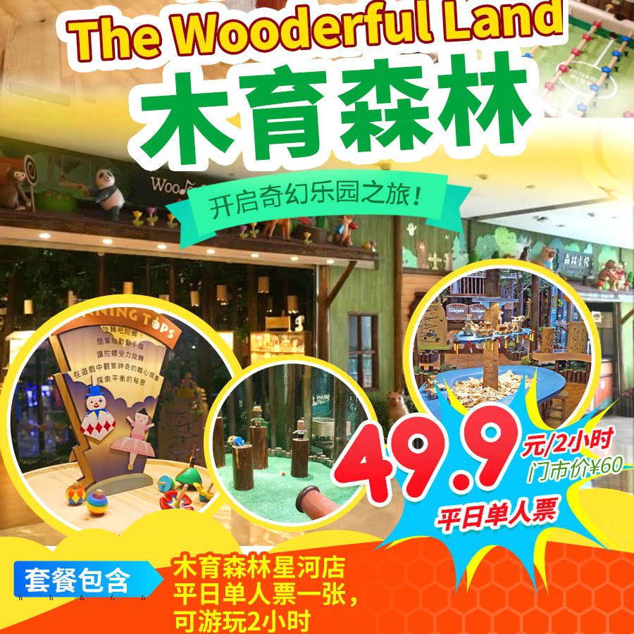 ¥49.9/人徜徉台湾文创品牌 『木育森林』星河店!一站式嗨玩竞技、闯关、体能、益智、趣味、亲情休憩六大趣味关卡!童心大爆炸,打卡满满森林气息,即刻开启奇妙新世界!