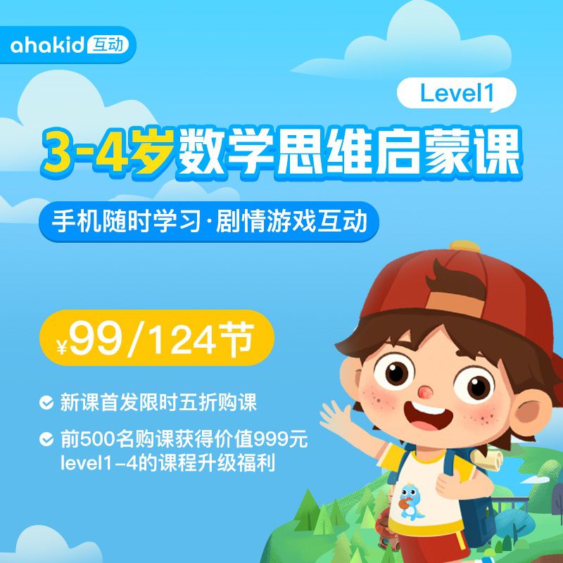 【限量500份】aha school 数学思维启蒙level1 AI互动课+前500名免费升级价值999元系统年课,每天10分钟,从数学启蒙到幼小衔接一步到位!