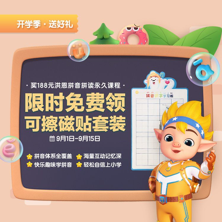 【9.1-9.15限时加赠可擦磁贴套装】洪恩拼音拼读永久包幼小衔接必备,一拼音一儿歌交互学习,科学语音测评系统,教学课程同步部编版小学语文课本!每天十分钟,轻松学拼音,让小朋友轻松上小学~
