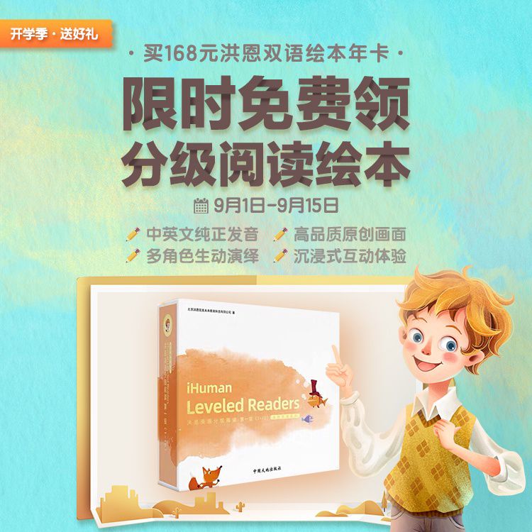 【9.1-9.15限时加赠分级阅读绘本】洪恩双语绘本VIP年卡,趣味阅读模式,中英文纯正发音,全球经典高品质原创画面呈现,实景探索,开启亲子AR时光~
