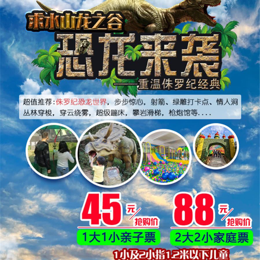 【中秋/国庆通用】¥45/1大1小起玩转深圳『求水山龙之谷』!一票畅享恐龙+绿雕+亲子乐园!即刻打卡1:1恐龙、射箭、枪炮射击、蹦床、攀岩N+网红项目!
