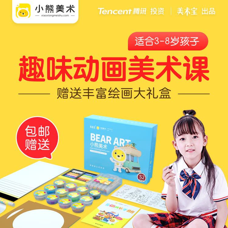 【适合3~8岁】小熊美术少儿美育素养AI课堂,10节课+包邮赠199元超值绘画大礼盒+专属辅导老师,用画笔点触世界,助孩子开阔眼界,快乐学习~