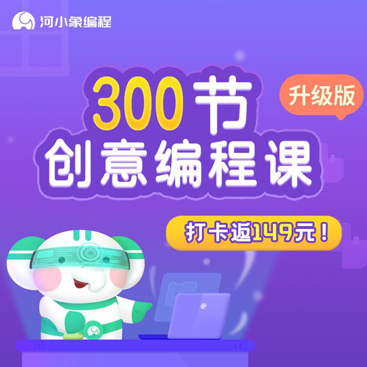 【打卡返149元】河小象300节创意编程课,每天10分钟,锁定孩子专注细心学习习惯,训练逻辑思维能力,帮5-12岁孩子掌握一门超越同龄人的竞争技能!