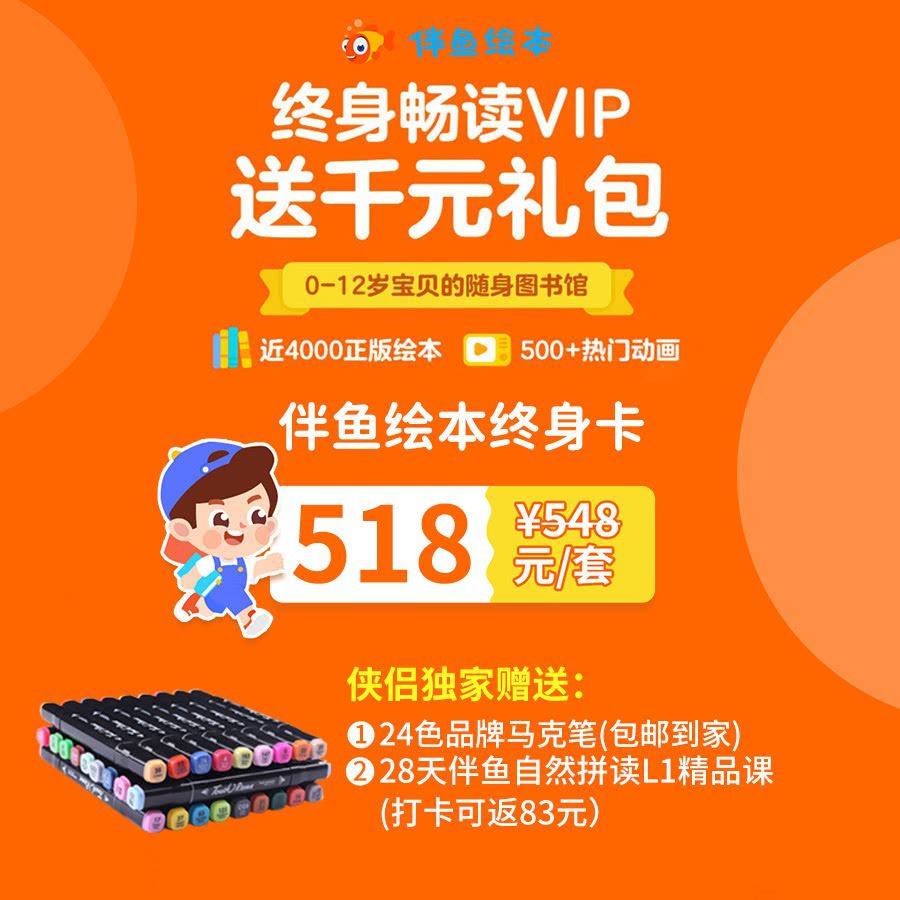 【侠侣独家 | 加赠24色品牌马克笔+自然拼读L1精品课】伴鱼绘本终身VIP,下单送伴你学习成长大礼包,打卡送千元礼品!畅读4000本正版绘本,0-12岁宝贝的随身图书馆~