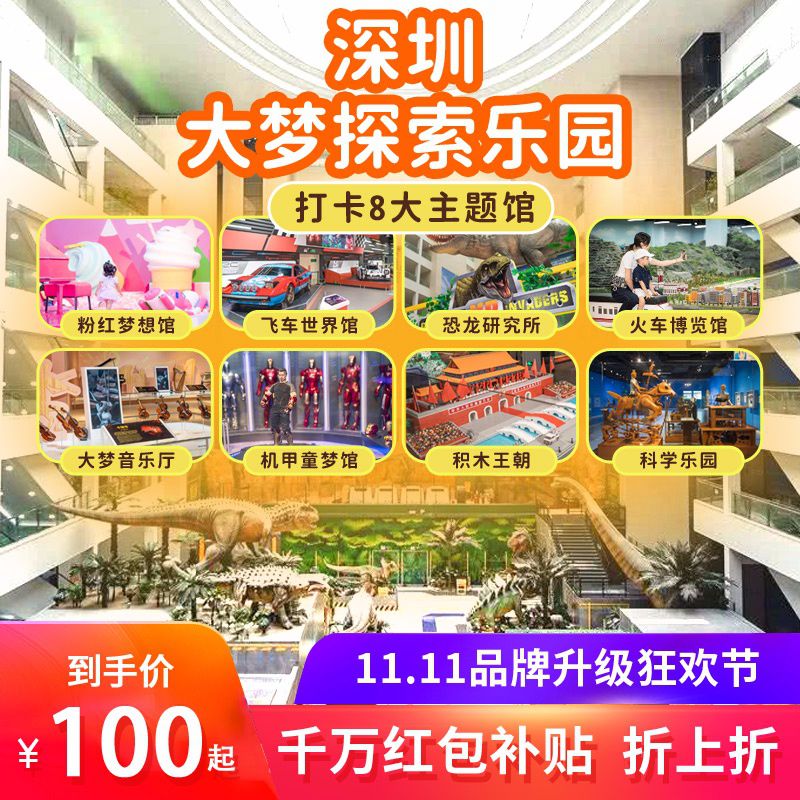双11嗨玩30000㎡深圳『大梦探索乐园』,低至¥100起一站式畅游博物馆+科技馆+游乐园3大场馆,打卡8大主题馆,300+互动体验项目,即刻开启大梦探索之旅!
