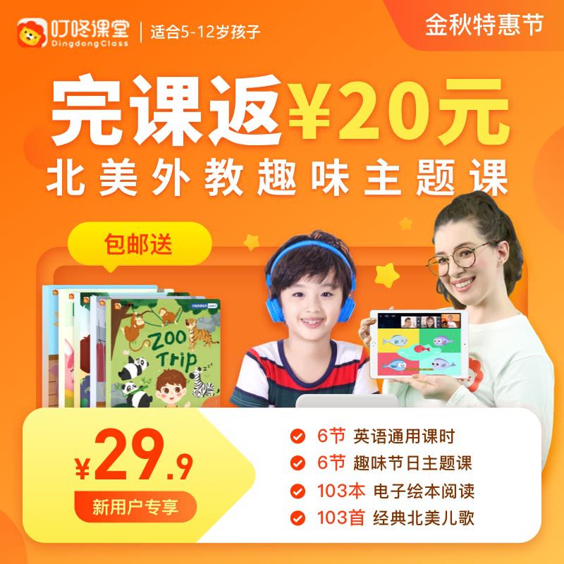 【完课返20元 | 包邮送5本配套绘本】叮咚课堂·6节北美外教趣味主题课+6节英语通用课时,搭配103本电子绘本阅读+103首经典北美儿歌,适合5-12岁!