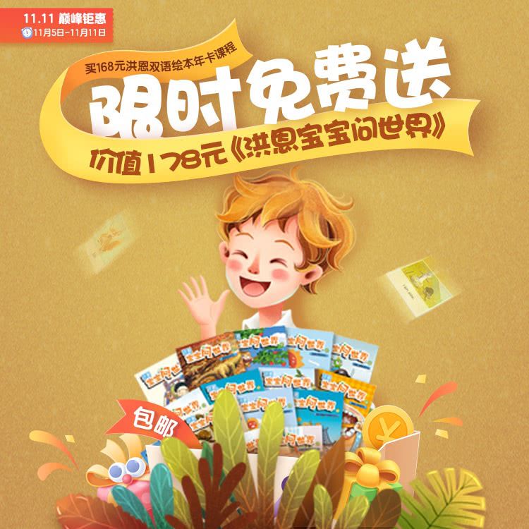 【11.5-11.11限时加赠178元洪恩宝宝问世界】洪恩双语绘本VIP年卡,趣味阅读模式,中英文纯正发音,全球经典高品质原创画面呈现,实景探索,开启亲子AR时光~