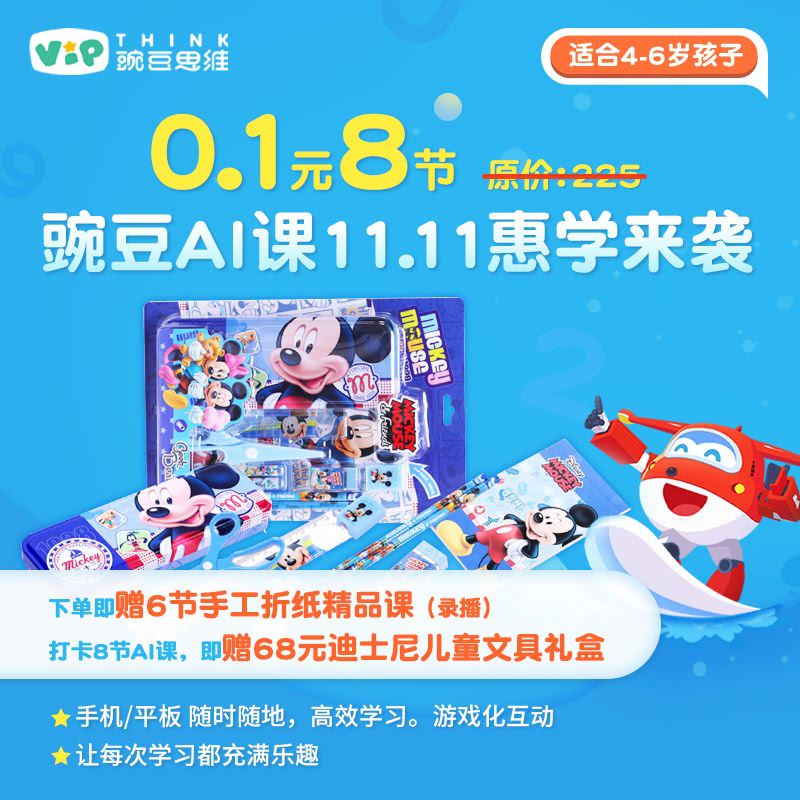 【双11惠学来袭!0.1元速抢】豌豆思维·8节AI互动课,下单即赠6节手工折纸精品课,打卡再赠迪士尼儿童文具礼盒!助力4-6岁孩子思维能力全面提升~