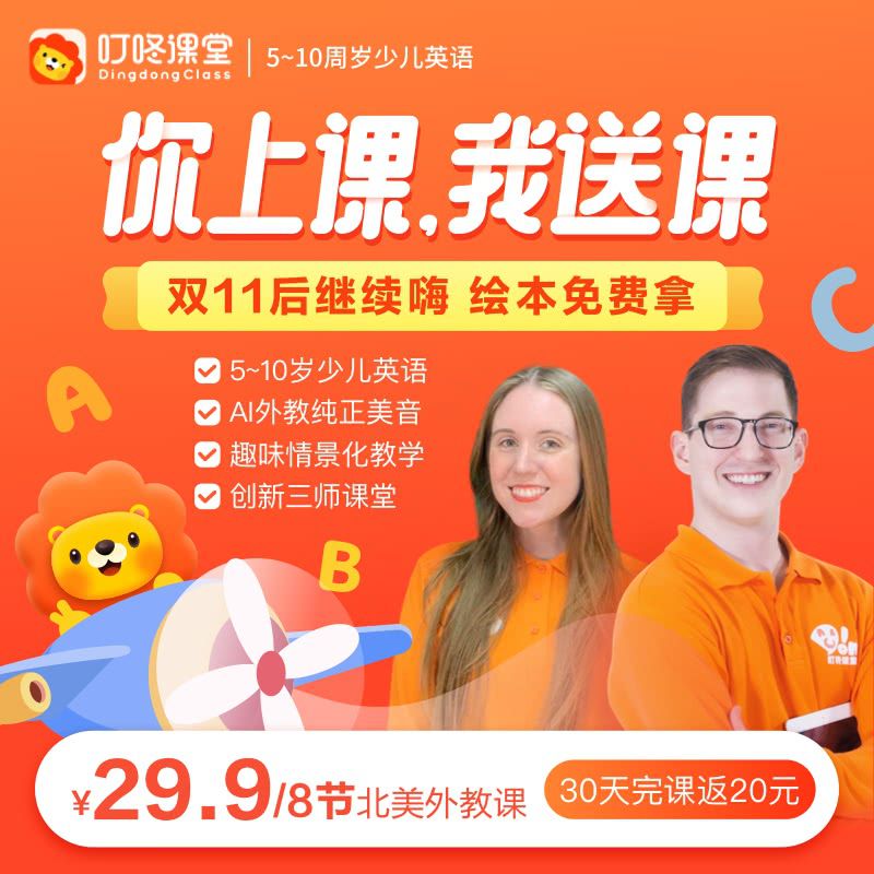 【完课返20元+赠4节课 | 包邮送5本配套绘本】叮咚课堂·8节外教英语课+103本电子绘本+103首经典北美儿歌,5-10周岁适用!