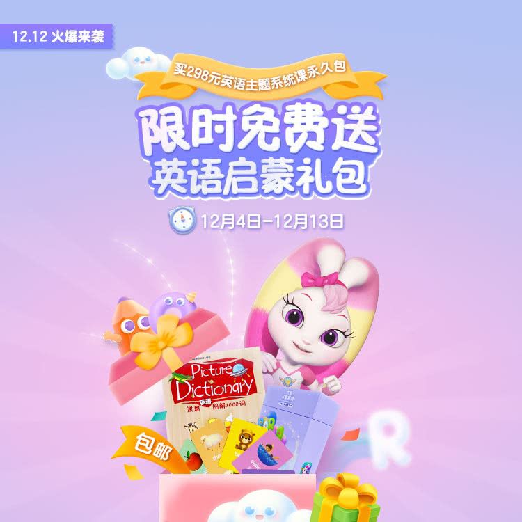 【12.4-12.13 限时加赠156元英语启蒙礼包】洪恩儿童英语主题系统课永久包,包含300节主题单词课+100节句型表达课+100节测评,高度还原生活化场景,大胆流利说英语