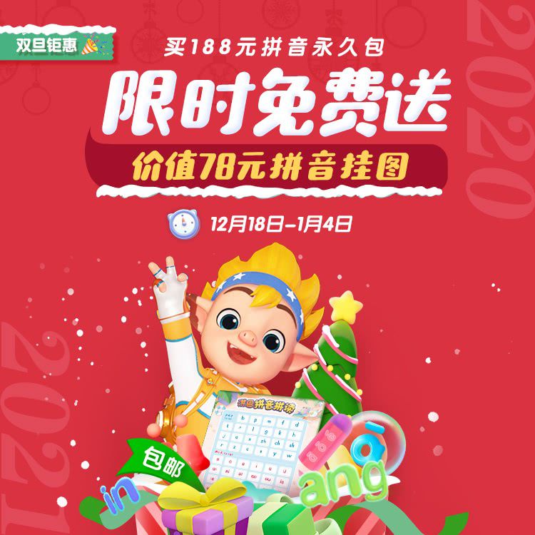 【12.18-1.4 限时加赠价值78元拼音挂图】双旦活动丨洪恩拼音拼读永久包幼小衔接必备,一拼音一儿歌交互学习,科学语音测评系统,教学课程同步部编版小学语文课本!每天十分钟,让小朋友轻松上小学~