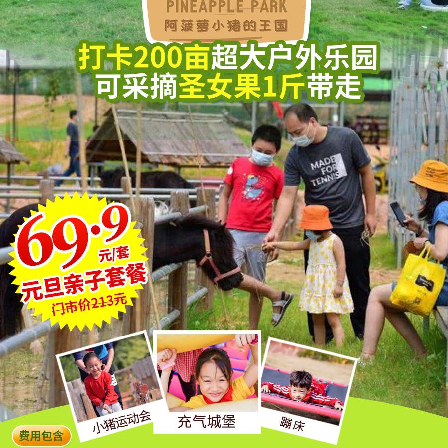 200亩超大户外乐园!¥69.9/1大1小玩转『阿菠萝小猪的王国』:小猪运动会、稻田划船、充气城堡/蹦床等多姿多彩的游乐项目!学娱食游新体验,可采摘圣女果1斤带走~