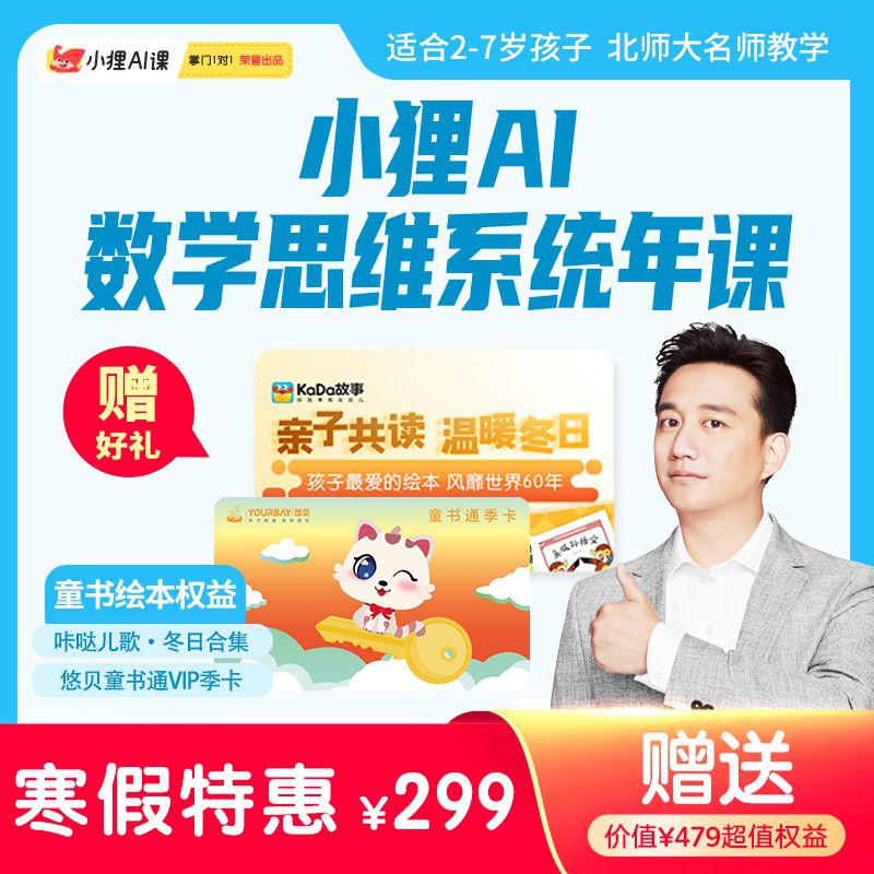 【寒假特惠 | 小狸AI数理思维训练营年课 】下单赠价值479元超值童书绘本权益!打卡再赠50节正课!200节主题AI互动课+20节全脑动画课,智能互动个性化数学,寓教于乐!