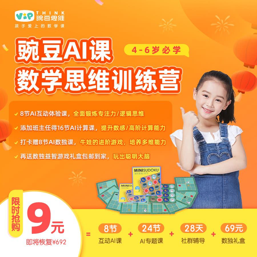 【4-6岁必学 | 包邮送数独进阶游戏礼盒】豌豆AI课·数学思维训练营,32节AI互动体验课+28天社群辅导,好莱坞级动画课件,孩子尖叫学上瘾~