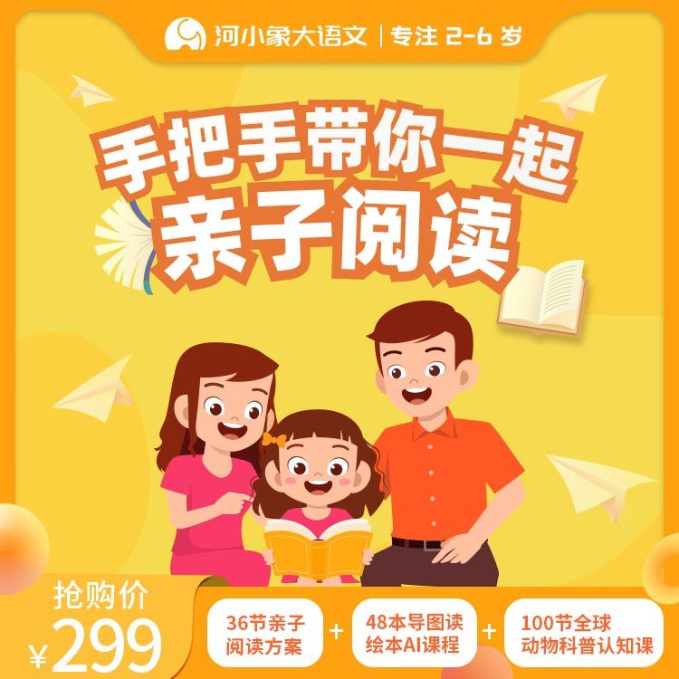 【新课首发 | 包邮送7本经典畅销实体绘本】河小象·亲子阅读课,36节阅读方法指导课+48本在线有声绘本阅读+100节全球动物科普认知课,解决2-6岁亲子共读困扰!