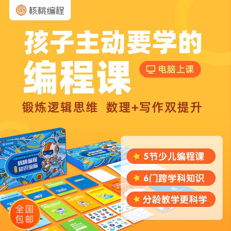 【寒假编程班,下单即赠超值学习礼盒】9.9元=5节核桃编程在线少儿编程启蒙课+38个思维小技巧+5节家庭教育课,世界机器人冠军名师领衔授课,成就儿童梦想!