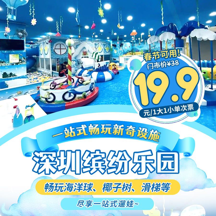 【春节可用】这里有一份快乐请签收!19.9元解锁深圳缤纷乐园:一站式畅玩海洋球、椰子树、滑梯,多彩炫酷的新奇设施,尽享一站式遛娃~