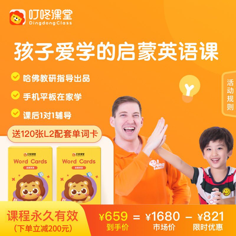【包邮送120张配套启蒙单词卡】叮咚课堂·56节启蒙英语课L2,哈佛教研领衔出品,2-5岁必备!融入动画故事,帮孩子轻松掌握衣服、颜色、兴趣爱好等主题词汇~