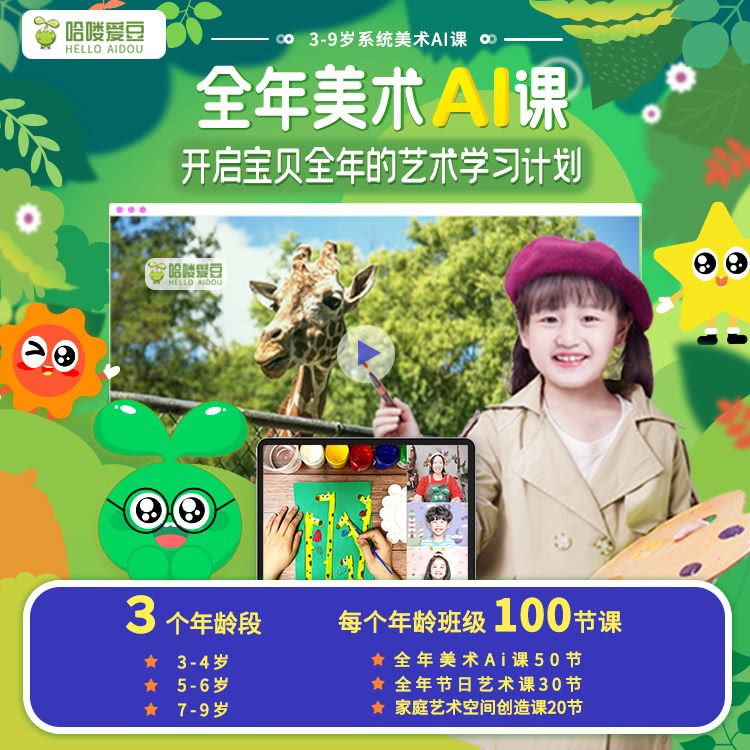 【爱豆AI美术年课丨新品特惠】包邮绘画材料大礼包+美术AI课50节+节日艺术课30节+家庭艺术空间创造课20节,分龄系统学习一整年,专业美院名师面对面互动学习