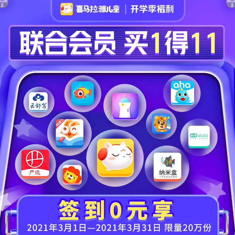 【爆款0元学 | 预售买1得14】喜马拉雅儿童会员2年卡·签到0元学,享11大联合会员权益,预售期再赠3大福利!爆款专辑+优质绘本+热门视频课,语数英百科齐全,适合0~12岁!