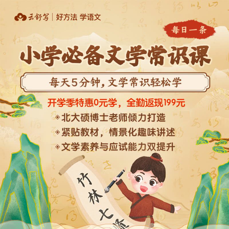 【全勤打卡0元学】云舒写 | 适合小学3-6年级的“文学常识课”,每日5分钟一条,文学常识轻松学!北大硕博士老师倾力打造,情景化趣味讲述,文学素养与应试能力双提升~
