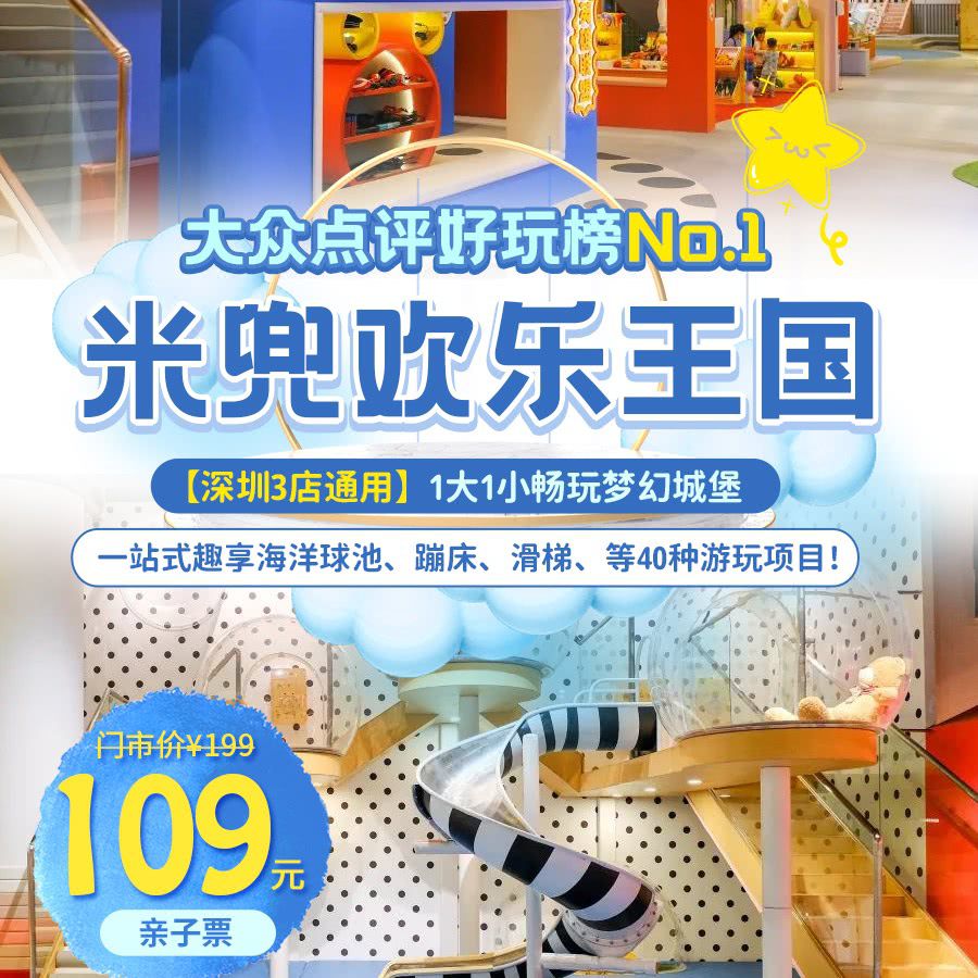 【深圳3店通用】大众点评好玩榜No.1!爆款返场,疯抢价¥109/1大1小,全天不限时畅玩2000㎡+梦幻城堡『米兜欢乐王国』,一站式趣享海洋球池、蹦床、滑梯、等40种游玩项目!