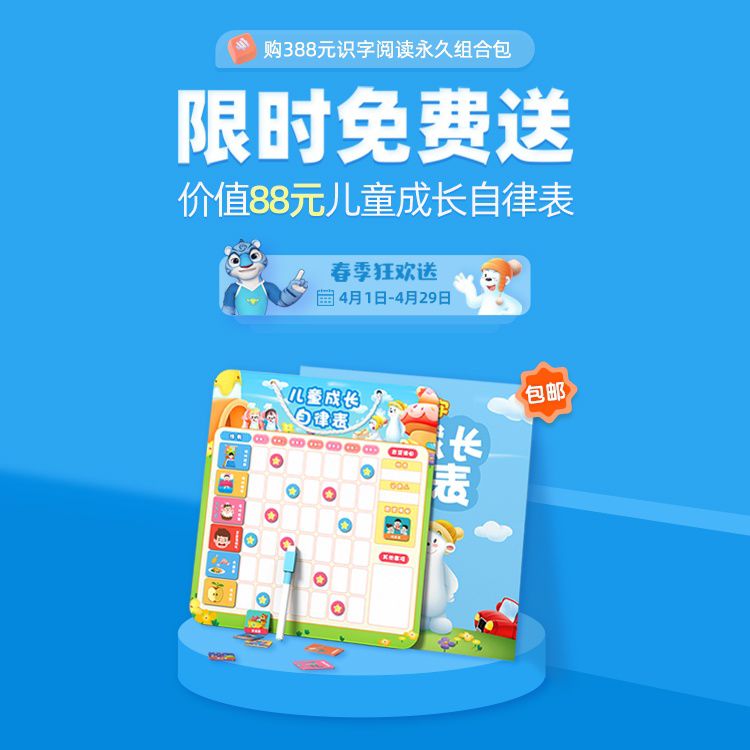 【春季狂欢 4.1-4.29】赠价值88元儿童成长自律表丨洪恩识字永久识字包+永久阅读包,专业分级阅读识字,让孩子轻松掌握1300个高频常用汉字!